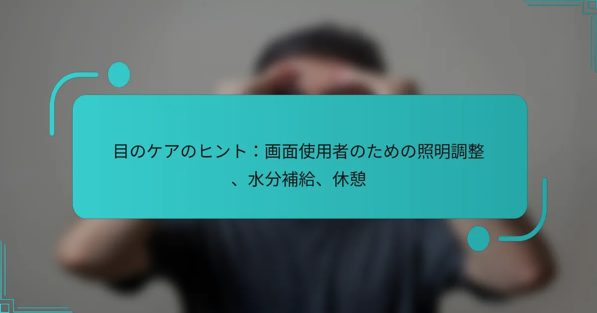 画面を使用する際に目を大切にすることは、快適さと健康を維持するために不可欠です。照明を簡単に調整し、水分を保ち、定期的に休憩を取ることで、目の疲れを大幅に軽減し、全体的な視覚体験を向上させることができます。これらのヒントは、デジタルデバイスの前で長時間過ごす人にとって重要です。 画面使用者が目の疲れを軽減するためにできる照明調整は? 適切な照明調整は、画面使用者の目の疲れを大幅に軽減できます。光源と画面の位置を最適化することで、まぶしさを最小限に抑え、視認性を向上させる快適な視覚体験を作り出すことができます。 家庭やオフィス環境における最適な照明設定 最適な照明設定を作成するには、環境光と作業光の組み合わせを考慮してください。環境光は全体的な明るさを提供し、作業光はデスクなど特定のエリアに焦点を当てます。厳しい影や明るいスポットを避けた明るい部屋を目指しましょう。 光源の位置を調整して、画面へのまぶしさを減らします。理想的には、モニターの前ではなく、後ろまたは横にライトを配置します。調光可能なライトを使用することで、時間帯や特定のニーズに応じて明るさを調整することもできます。 まぶしさを最小限に抑える電球の種類 適切な電球を選ぶことは、まぶしさを最小限に抑えるために重要です。LED電球は、エネルギー効率が高く、さまざまな色温度を生成できるため、しばしば推奨されます。「ソフトホワイト」または「ウォームホワイト」と表示された電球を探して、より快適な雰囲気を作りましょう。 厳しい照明を避けるために、低ワット数の電球を使用することを検討してください。マット仕上げの電球は光を拡散し、まぶしさを減らすのに役立つため、画面を頻繁に使用する作業スペースに最適です。 視認性を高めるための画面の位置調整 適切な画面の位置調整は、視認性を大幅に向上させ、目の疲れを軽減します。モニターを目の高さに配置し、腕の長さほど離れた位置に置くことで、自然な視角を促進します。画面の上部は目の高さと同じか、やや下にあるべきです。 画面の傾きを調整して、窓や overhead ライトからの反射を最小限に抑えます。わずかな傾きが、目から光を逸らしつつ、画面を明確に見るのに役立ちます。 快適さのための画面の明るさとコントラストの調整 画面の明るさとコントラスト設定を調整することで、目の疲れを軽減できます。画面の明るさを周囲の光に合わせることを目指しましょう。画面が周囲の光よりもはるかに明るい場合、不快感を引き起こす可能性があります。 快適に感じるバランスを見つけるために、コントラスト設定を試してみてください。高いコントラストは可読性を向上させますが、コントラストが強すぎると疲労を引き起こすことがあります。特に異なる照明条件に移動する際には、これらの設定を定期的に再評価してください。 反射防止フィルターとコーティングの使用 反射防止フィルターとコーティングは、画面上の反射やまぶしさを減らすための効果的なツールです。これらのフィルターは、モニターに直接適用することも、画面の一部として購入することもできます。光を拡散し、直接的な反射を最小限に抑えることで機能します。 反射防止技術を内蔵した画面への投資を検討してください。この機能は、特に明るい環境での視覚体験を向上させ、長時間の画面使用中に視覚的快適さを維持するのに役立ちます。 水分補給は画面使用者の目の健康にどのように影響しますか? 水分補給は目の健康を維持する上で重要な役割を果たします。特に画面の前で長時間過ごす人にとっては重要です。適切な水分補給は目を潤し、不快感やデジタル眼精疲労のリスクを減らします。 最適な目の機能のための推奨される1日の水分摂取量 1日の水分摂取量の一般的なガイドラインは、女性が約2.7リットル、男性が約3.7リットルで、すべての飲料や食べ物を含みます。ただし、個々のニーズは活動レベル、気候、全体的な健康状態によって異なる場合があります。画面使用者は、これらの範囲の高い方を目指すことで、目の潤いと快適さを維持できます。 十分な水分補給を確保するために、喉が渇くのを待つのではなく、日中定期的に水を飲むことを検討してください。水筒を近くに置くことで、より頻繁に飲むことを思い出させることができます。 目の健康と水分補給を促進する食品 水分補給に優れた食品を食事に取り入れることで、目の健康に大きな利益をもたらすことができます。以下は、水分補給に優れ、目にも良い食品です: スイカ キュウリ オレンジ ほうれん草 ニンジン これらの食品は水分を提供するだけでなく、目の機能をサポートするビタミンA、Cや抗酸化物質などの必須栄養素も含まれています。これらの食品を食事に多様に取り入れることで、水分補給と目の健康を同時に向上させることができます。 視力に影響を与える脱水の兆候 脱水は、視力に影