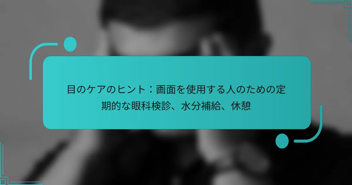 今日のデジタル時代において、定期的な眼科検診は、画面を使用する人々が目の健康を守り、潜在的な問題を早期に発見するために不可欠です。水分補給も同様に重要で、目の潤いを保ち、長時間の画面使用に伴う不快感を軽減します。さらに、20-20-20ルールのような構造化された休憩を取り入れることで、目の疲れを和らげ、長時間の画面使用中の全体的な快適さを向上させることができます。 画面を使用する人々にとって定期的な眼科検診が重要な理由は何ですか? 定期的な眼科検診は、画面を使用する人々が目の健康を監視し維持するために不可欠です。特に、長時間の画面使用による負担があるためです。これらの検診は、潜在的な問題を早期に発見し、適時の介入を確保し、長期的な損傷のリスクを軽減します。 画面使用が目の健康に与える影響を理解する 長時間の画面使用は、主にデジタル眼精疲労によるさまざまな目の健康問題を引き起こす可能性があります。この状態は、画面に長時間集中することから生じ、不快感や疲労を引き起こします。 画面を使用する人々は、まばたきの頻度が減少し、乾燥した目や刺激を感じることがよくあります。さらに、画面から発せられる青色光は、視覚的な不快感を引き起こし、睡眠パターンを乱す可能性があります。 画面から適切な距離を保ち、十分な照明を確保することで、これらの影響を軽減できますが、定期的な眼科検診は包括的なケアのために依然として重要です。 眼科検診を怠ることによるリスクを特定する 定期的な眼科検診を怠ると、時間とともに悪化する可能性のある視力の問題が見逃されることになります。近視、遠視、乱視などの状態は、初期には目立った症状がなくても進行することがあります。 目の健康を無視すると、慢性的なデジタル眼精疲労など、より深刻な問題を引き起こす可能性があり、全体的な生産性や生活の質に影響を与えることがあります。早期発見は、より集中的な治療を必要とする合併症を防ぐために重要です。 デジタル眼精疲労の症状を認識する 乾燥した目または涙が出る目 ぼやけた視界 頭痛 焦点を合わせるのが難しい 首や肩の痛み これらの症状は強度が異なり、画面使用が増えるにつれてより顕著になることがあります。画面を使用する人々は、これらの兆候に注意し、定期的に経験する場合は専門家のアドバイスを求めることが重要です。 視力問題の早期発見の利点 視力問題の早期発見は、適時の介入を可能にし、治療結果を大幅に改善することができます。定期的な眼科検診は、問題が深刻になる前に特定し、効果的な管理戦略を可能にします。 視力問題に早期に対処することで、より複雑な治療や潜在的な長期的な影響を避けることができます。この積極的なアプローチは、目の健康を保つだけでなく、全体的な幸福感や生産性を向上させます。 画面使用に基づく眼科検診の頻度に関するガイドライン 画面を使用する人々に対する眼科検診の推奨頻度は、年齢や使用パターンによって異なります。一般的に、頻繁に画面を使用する成人は、1〜2年ごとに眼科検診を受けるべきです。 子供や若者の場合、特に重度の画面使用者であれば、年に少なくとも1回の検診が必要です。デジタル眼精疲労の症状を経験している人は、最後の検診日を問わず、早めに眼科専門家に相談するべきです。 水分補給は画面を使用する人々の目の健康にどのように影響しますか? 水分補給は、特に長時間画面の前にいる人々にとって目の健康を維持する上で重要な役割を果たします。適切な水分補給は、目を潤いを保ち、デジタル眼精疲労のリスクを軽減します。 目の潤いを維持するための水分補給の役割を説明する 水分補給は、目を潤滑し、刺激から保護する涙を生成するために不可欠です。体が適切に水分補給されていると、涙の膜が安定し、乾燥や不快感を防ぎます。逆に、水分不足は涙の生成を減少させ、乾燥した目やぼやけた視界を引き起こす可能性があります。 画面を使用する人々は、まばたきの頻度が低くなることが多いため、目の潤いを維持することがさらに重要です。十分な水分補給は、涙の機能を最適化し、デジタル眼精疲労の症状を軽減することができます。適切な水分補給を確保することで、長時間の画面使用中の全体的な快適さを向上させることができます。 視力に影響を与える脱水の兆候を特定する 脱水の兆候を認識することは、目の健康を維持するために重要です。一般的な症状には、乾燥した目やかゆみ、ぼやけた視界、光に対する感受性の増加が含まれます。これらの症状を経験する場合、体が適切に水分補給されていない可能性があります。 乾燥した目またはかさぶたのような目 ぼやけた視界 光に対する感受性の増加 頻繁な頭痛 疲労感 これらの兆候に気付いた場合は、水分摂取を増やし、画面使用から定期的に休憩を取ることを検討してください。 目の健康を最適化するための推奨される1日の水